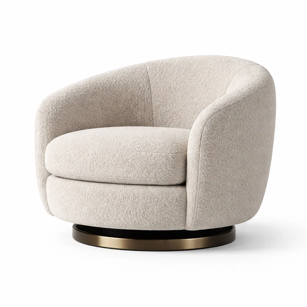 Sedia girevole in poliestere beige base rotonda in metallo